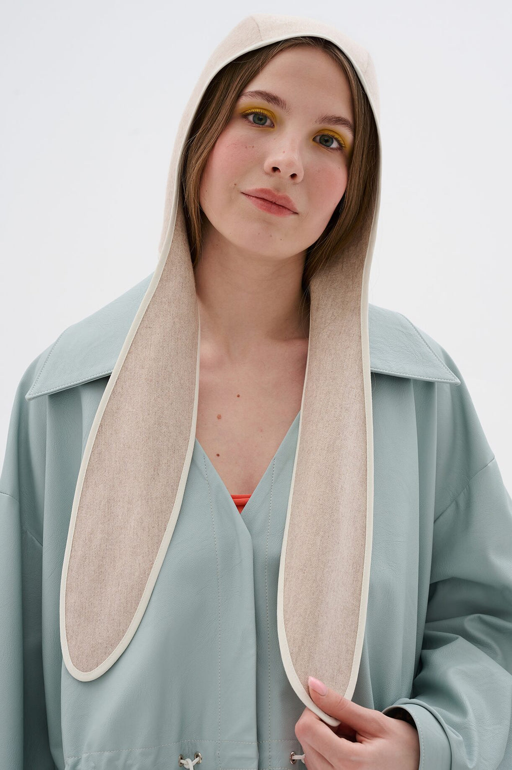 Hooded Puffer Jacket with Bunny Scarf Electric Blue