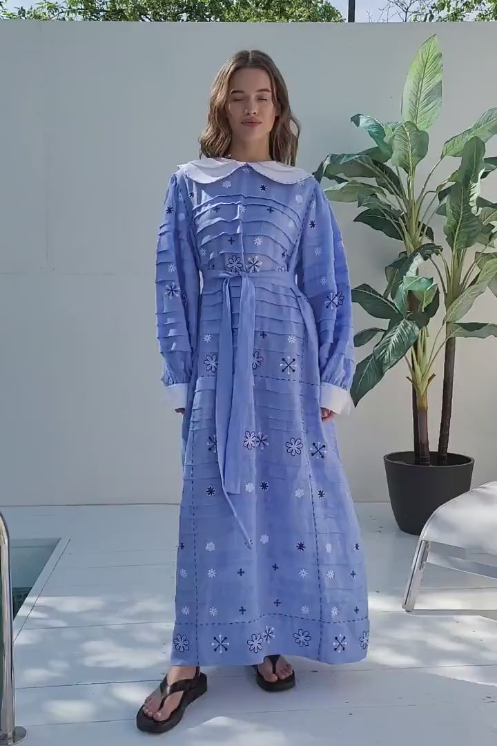 Not your usual dress indeed. Prepare to be dazzled by this beautiful light blue dress, crafted from the finest linen.