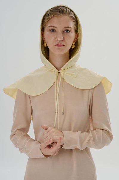 - Convertible design: hood with cape that ties with cords (finished with decorative bells) — practical for unpredictable weather.